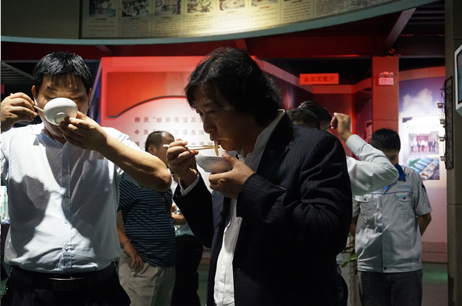在吳總的陪同下鐘博士和安總一行來到公司車間觀看了產品生產現場和研發中心,隨后來到公司產品展示廳,吳總從企業文化到公司發展進程進行了詳細的介紹。經過現場參觀,智能鮮面機“現吃現做”受到了鐘博士和安總團隊的高度評價。值得一提的是,在展廳現場,無人售賣智能熟面機成為全場參觀焦點,經過體驗式操作和現場品嘗,參觀一行團隊對智能熟面機的產品制造工藝以及智能優勢給予肯定。