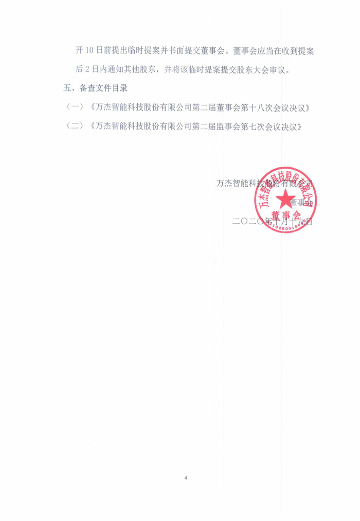 萬杰智能關(guān)于召開2019年年度股東大會的通知公告